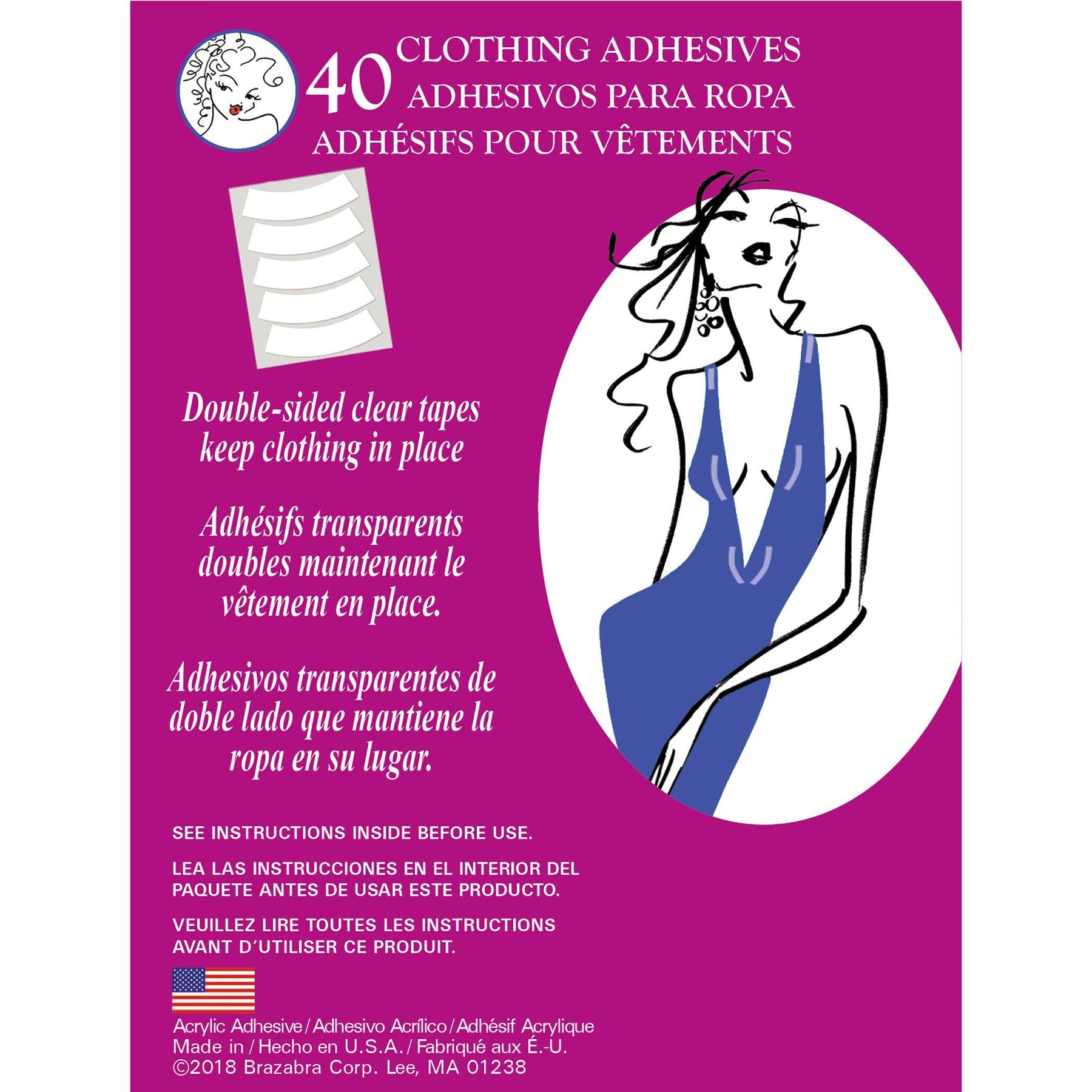 Braza's fashion essential, Clothing Adhesives, keeps clothes exactly where you want them with clear, double-sided adhesive strips. Each package contains 40 wide tape strips, with a crack ‘n peel liner.